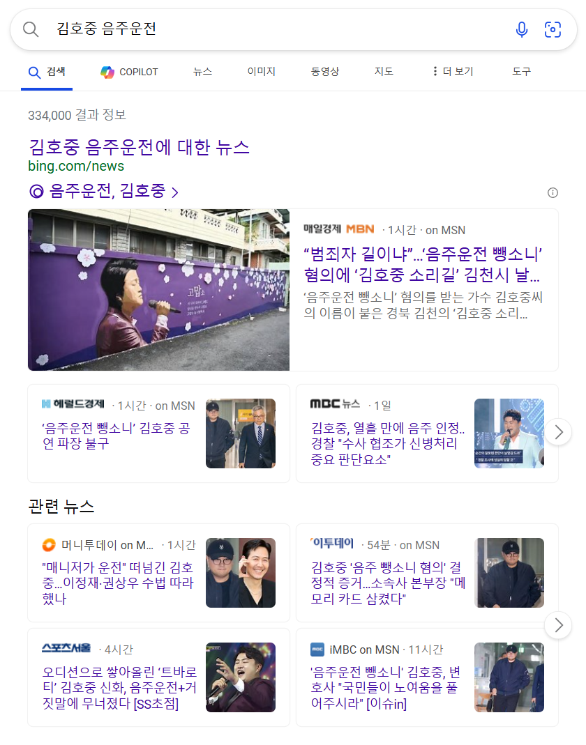 제목들만 봐도 음주운전 한방에 나락으로 떨어진 것을 볼 수가 있습니다.