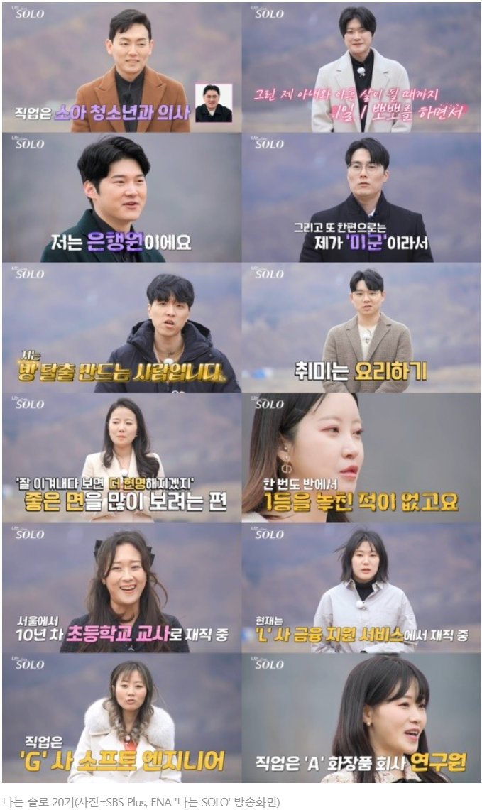 나는 솔로를 보면서, 이 사람의 케릭터와 성향들을 맞춰 보는 것도 재밌는 일입니다.