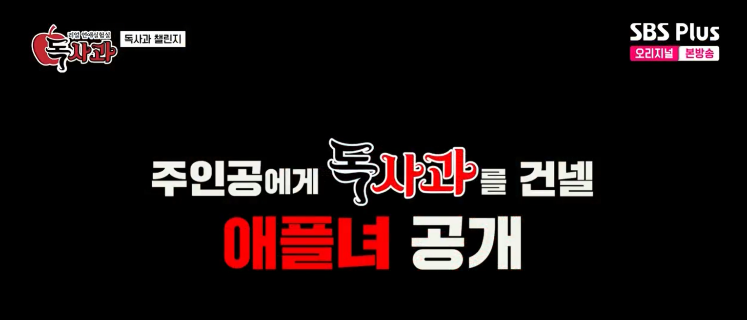 리얼 연애실험실 독사과 '애플녀를 아시나요?'요즘 MZ세대들의 사랑이 궁금하면?! 리얼 실험카메라로 사랑을 확인한다!언제나? 관심이 많은 연애의 주제로, 서로의 사랑과 믿음을 확인해 보는