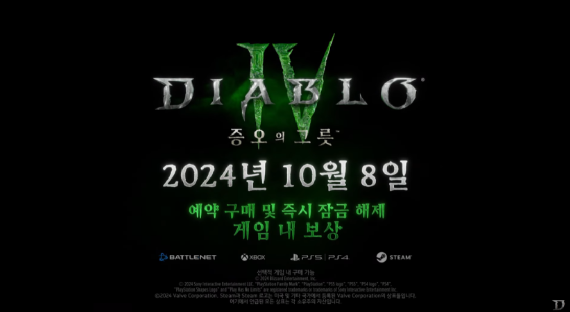 디아블로4 첫번째 확장팩 '증오의 그릇'이 년말이나 내년에 출시 될지 알았는데,