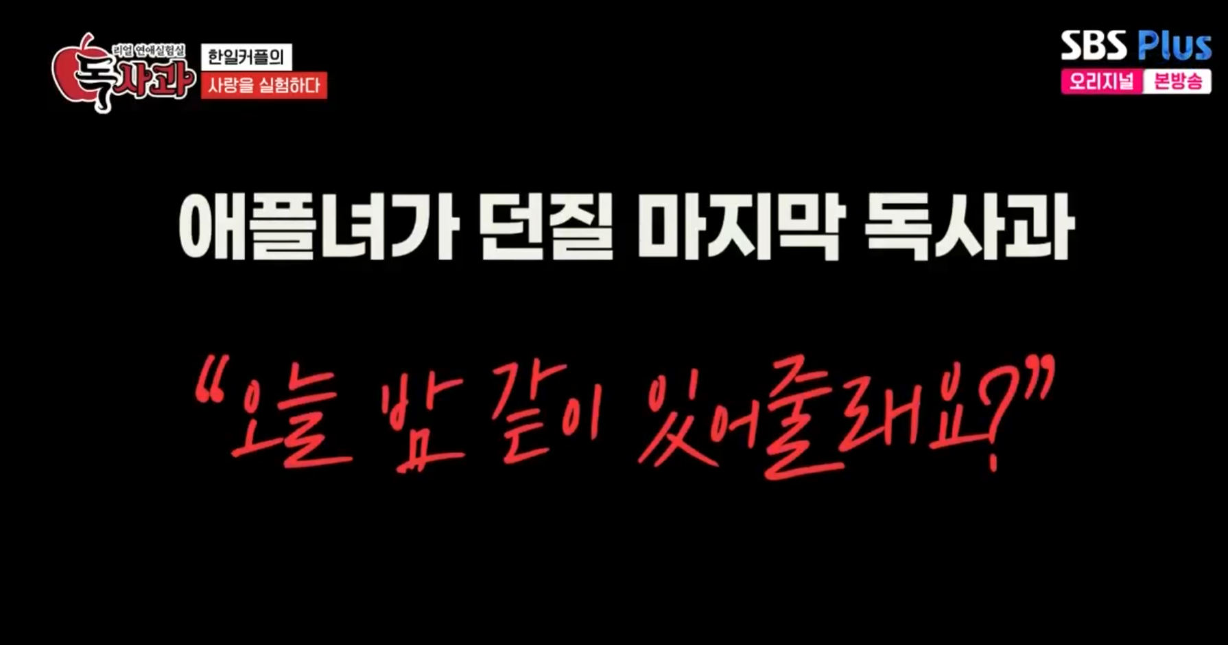 리얼 연애실험실 독사과 '애플녀를 아시나요?'요즘 MZ세대들의 사랑이 궁금하면?! 리얼 실험카메라로 사랑을 확인한다!언제나? 관심이 많은 연애의 주제로, 서로의 사랑과 믿음을 확인해 보는