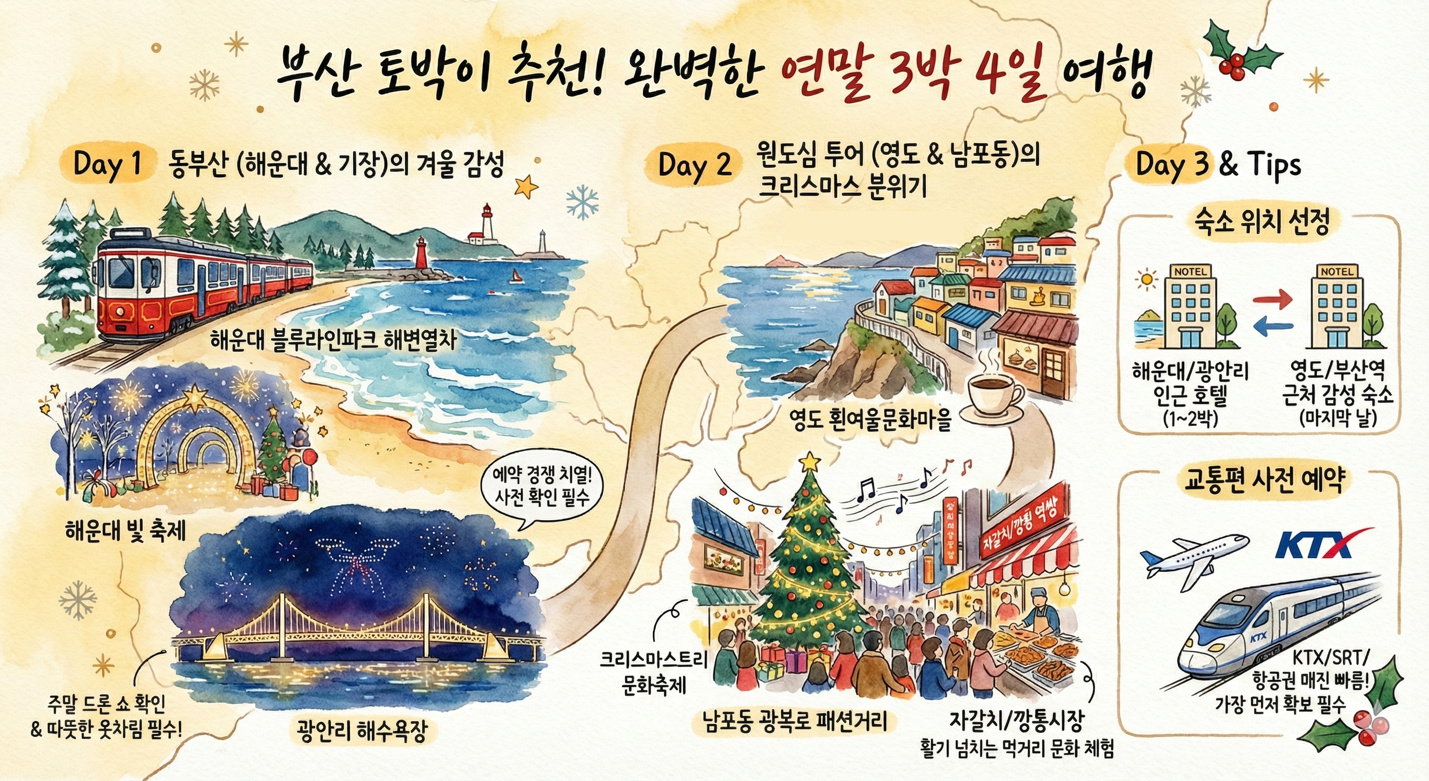 동선 낭비를 최소화하고, 감성과 실속을 모두 챙길 수 있는 연말 부산 3박 4일 여행계획의 핵심 코스를 제안해 드립니다.