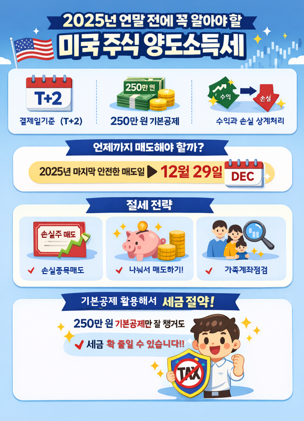이번 글에서는 2025년 미국 주식 양도소득세 기준일, 세율, 연말 절세 전략을 한 번에 정리해드립니다.