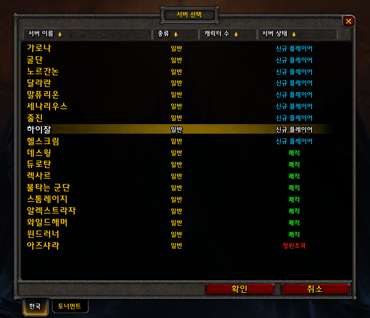 새로운 어둠땅 확장팩을 해보려고 하는 저와 같은 와저씨들(?)이 다시 복귀를 하고 시작하려고 했을 때, 이전에 열심히 키웠던 케릭터가 보이지 않는다고, 우리가 회사에서 책상이 없어지고, 자리가 없어지면 짤리는거 아닌가? 라고 걱정하지 마시고, 이전에 했던 서버를 클릭해 보면, 안보이던 케릭터가 다시 보인다는거!!