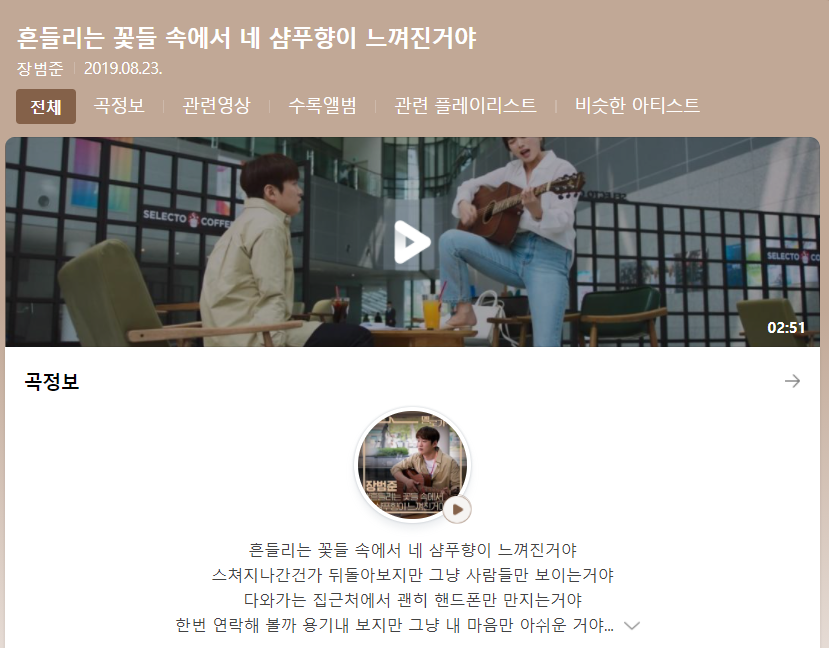 가사도 너무 좋고 목소리도 너무 좋고, 히든싱어에 나온 장범준 편을 보고 좋아하게 되었습니다.