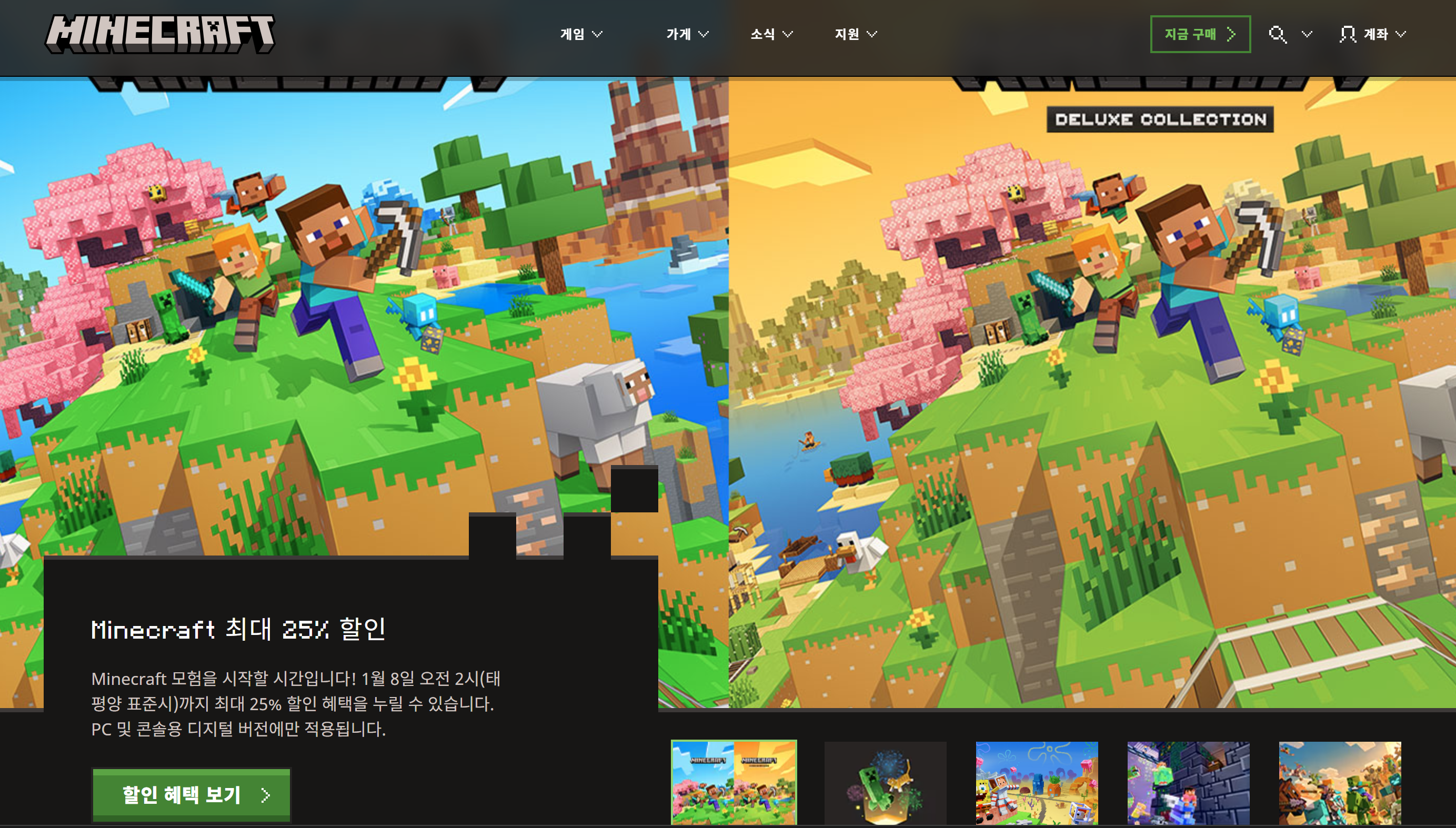 현재 마인크래프트는 연말연시 프로모션 위주로 할인이 진행되고 있습니다.