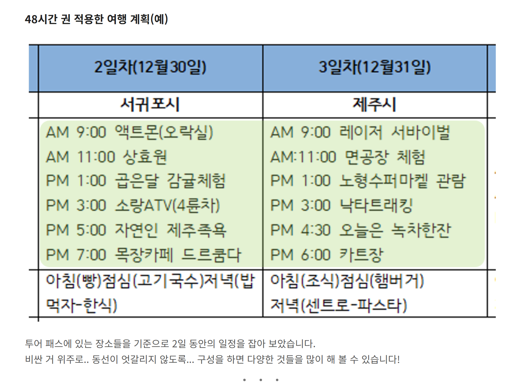[정보] 제주 투어 패스 소개 및 48시간 적용안