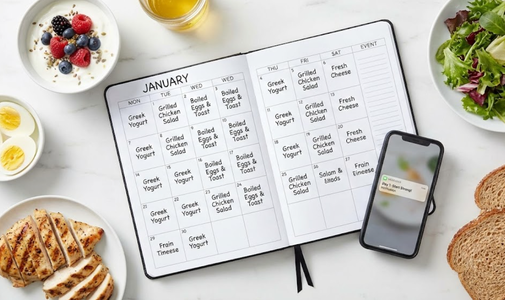 | 7일 | [치팅] 샌드위치 (소스 적게) | [치팅] 먹고 싶은 메뉴 (양 조절 필수) | 닭가슴살 샐러드 (가볍게 마무리) |
