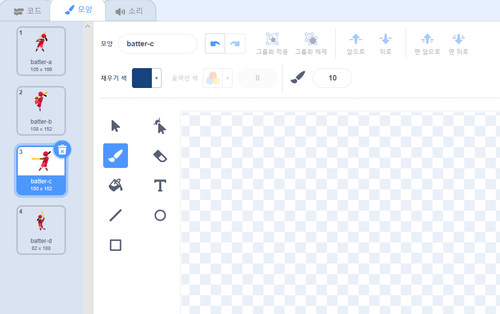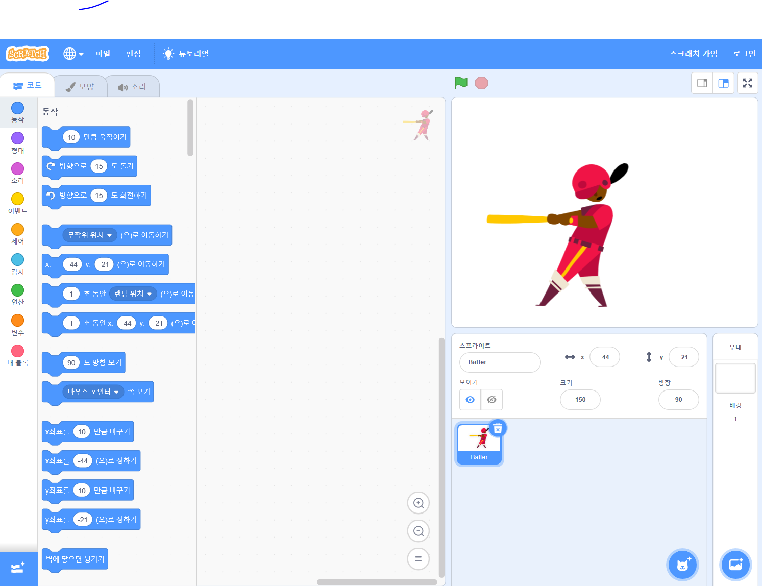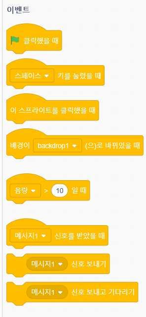하나씩 눌러보고 동작을 시켜보면, 어떻게 실행이 되는지 스테이지(무대)창에서 확인할 수 있습니다.