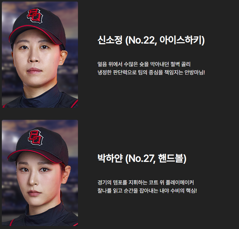 | 구분 | 박세리 단장 | 추신수 감독 |