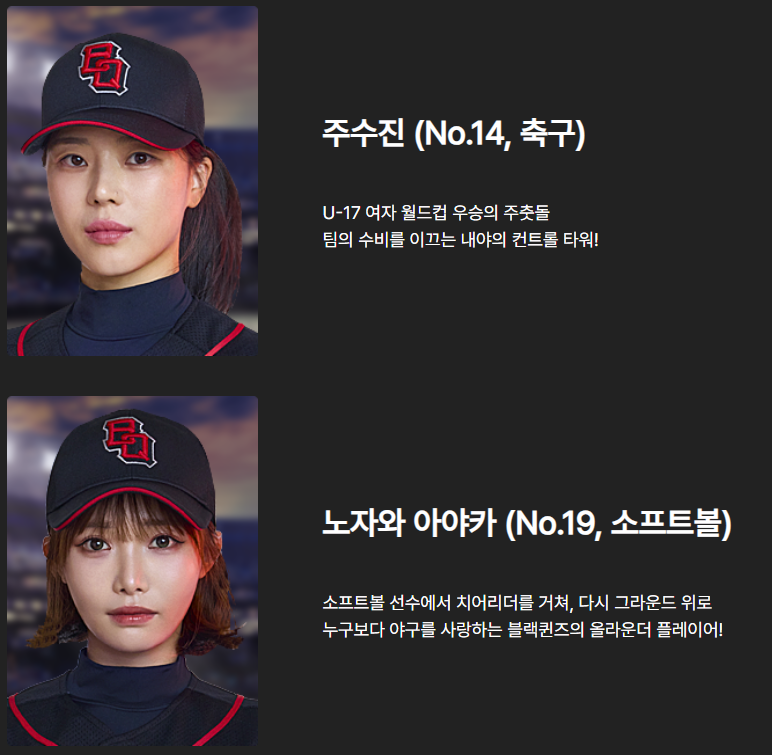 프로그램의 중심을 잡아주는 박세리 단장과 추신수 감독의 존재감 또한 야구여왕의 중요한 관전 포인트입니다.