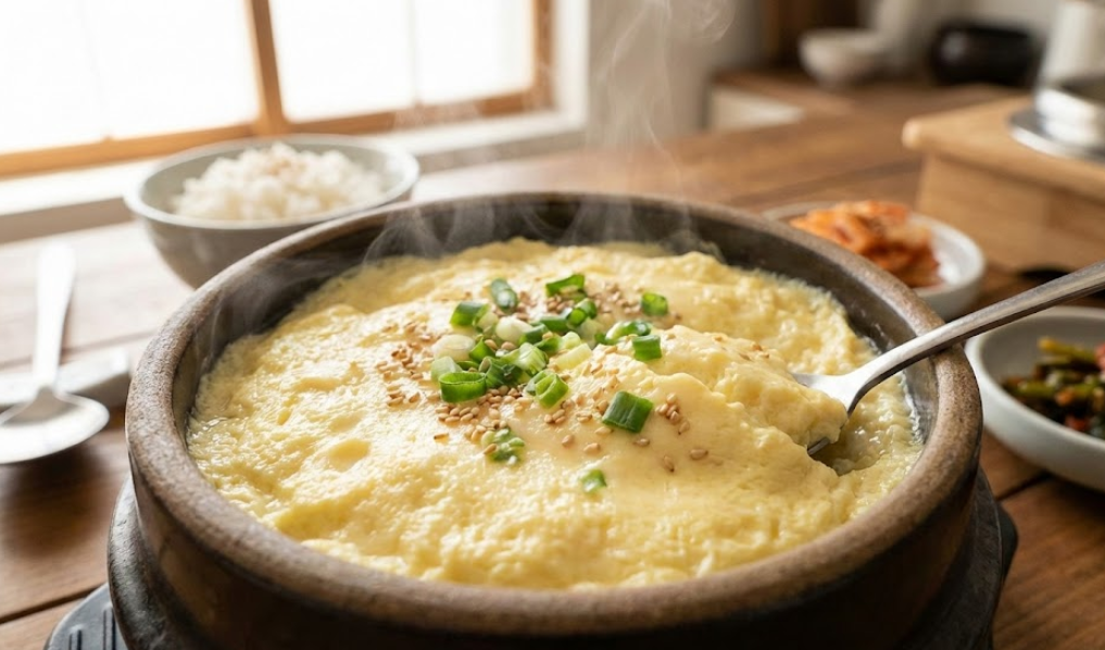 - 불 조절의 핵심 (직화 기준): 뚝배기에 계란물을 붓고 처음에는 중불로 가열합니다. 바닥과 가장자리가 눌어붙지 않도록 숟가락으로 계속 저어주세요.