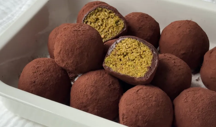 - 코팅하기: 동글동글 굴려 이음새를 매끈하게 정리한 구 모양으로 만듭니다. 마지막으로 체 친 코코아 파우더에 굴려 겉면을 코팅해 줍니다.