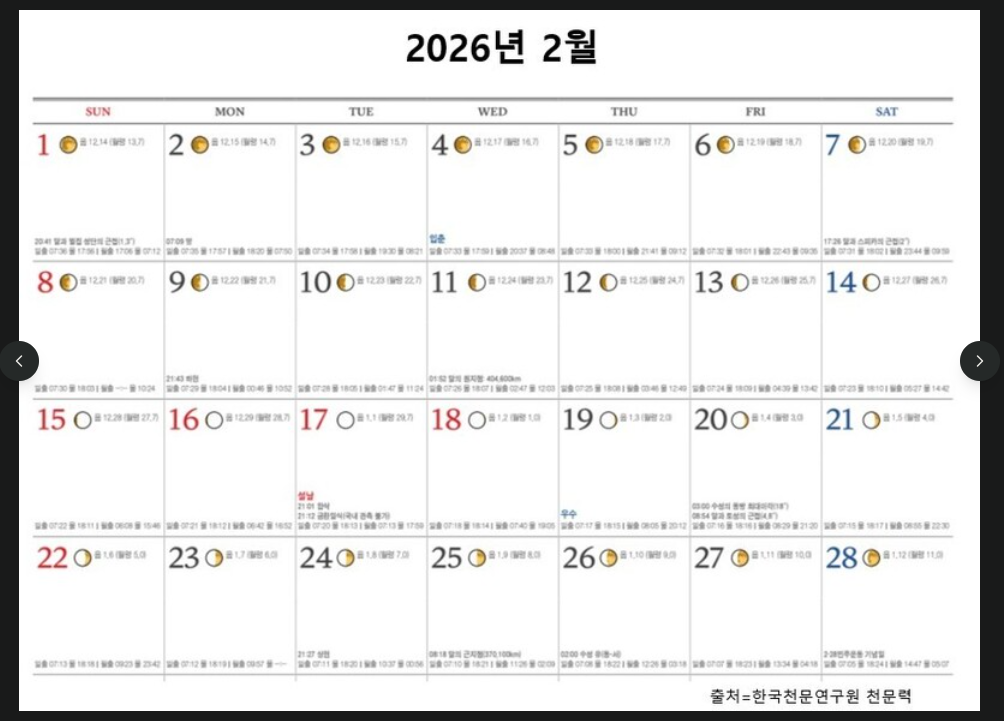 - 다가오는 '완전한 달력': 바로 내후년인 2026년 2월입니다.