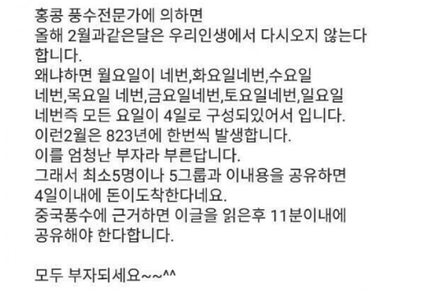 4년 주기로 돌아오므로 '몇 십 년 만'이라는 표현과는 거리가 멉니다. - "음력 2월이 두 번 있는 해": 이는 음력에서 계절과 날짜를 맞추기 위해 넣는 '윤달(윤이월)'이 낀 해를 말합니다.