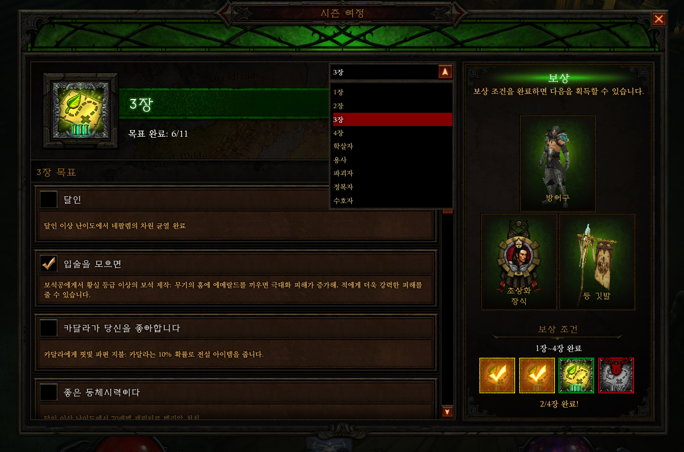이제 디아블로를 좀 더 많이한 지인과 함께, 시즌 보상을 얻기위한 퀘스트를 마무리를 하고,