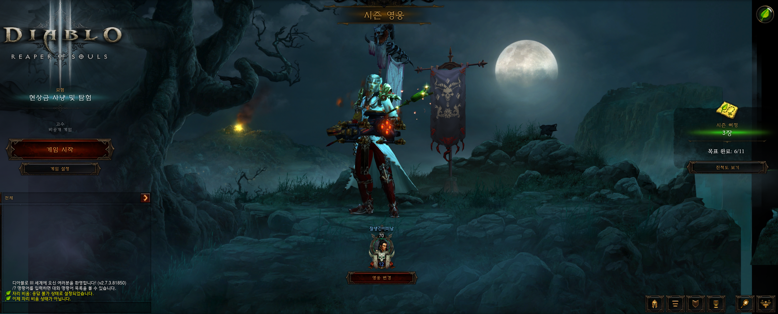 모험이라는 옵션의 창이 열리면, 새롭게 시즌별 게임을 진행할 수가 있습니다.