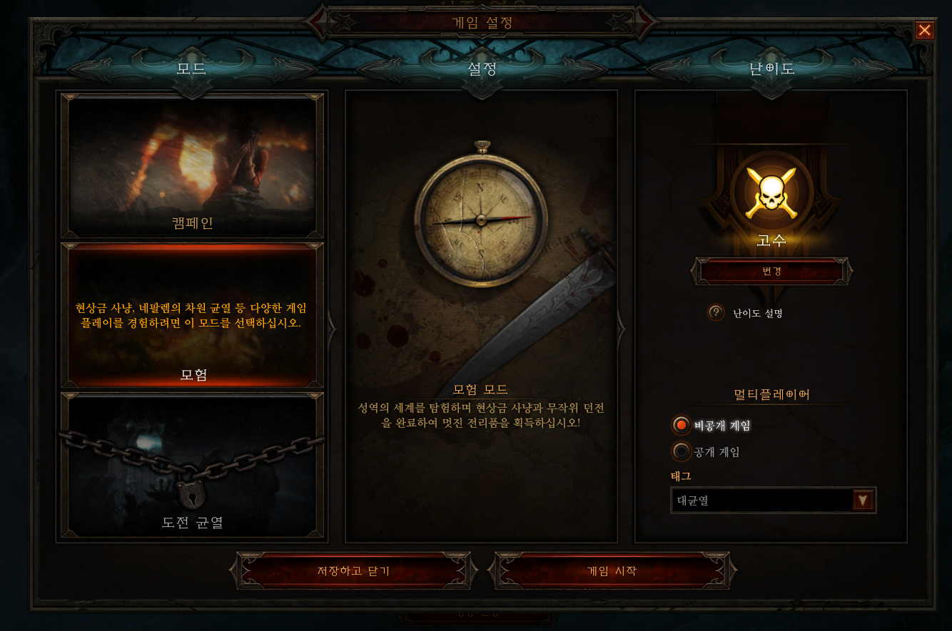 일단, 5막까지의 캠페인을 다 깨야지만 "모험" 이란 것으로 넘어갈 수가 있습니다.