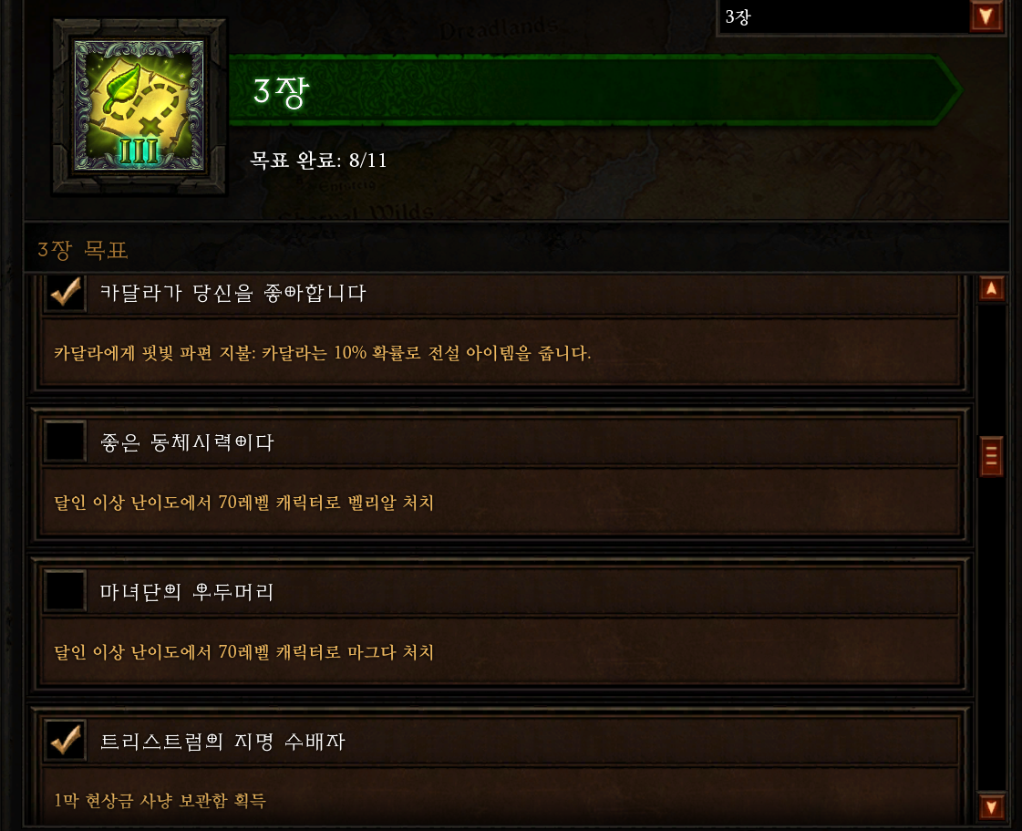 현재 3막에 70렙으로 케릭터 잡는 것과 전설템을 추출(?) 하는 것만 남은 상태인데,