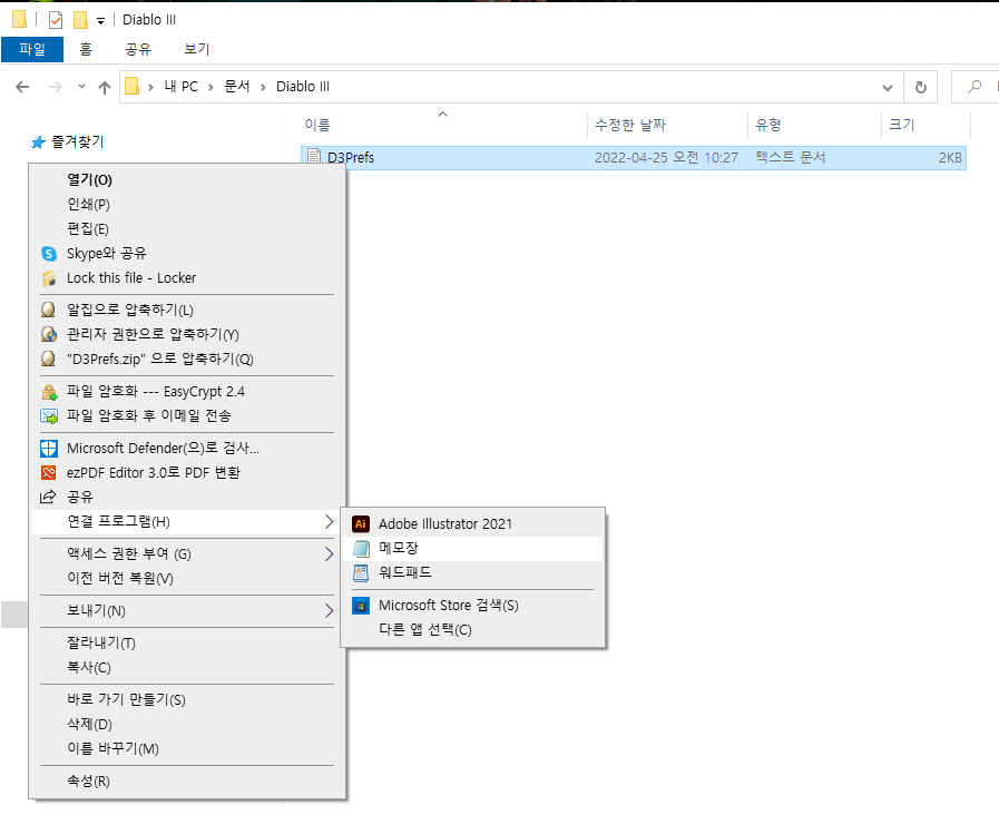 마우스 오른쪽 버튼을 기준으로, 연결프로그램으로 가서 메모장으로 열면 간단하게 설정할 수 있습니다.