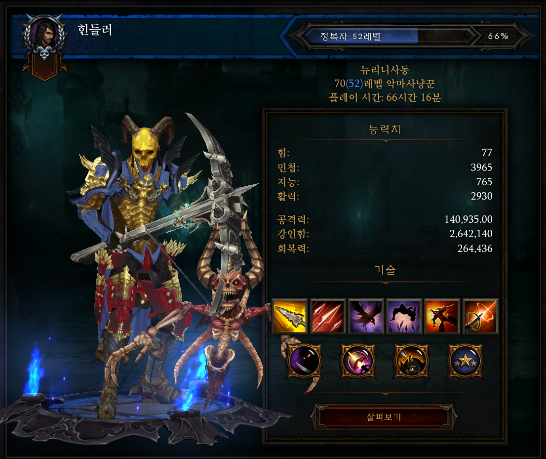 그리고, 지금 다시 키우고 있는 악마사냥꾼!! 아직 시즌에 해당하는 4막까지 다 완료하지 못해서,