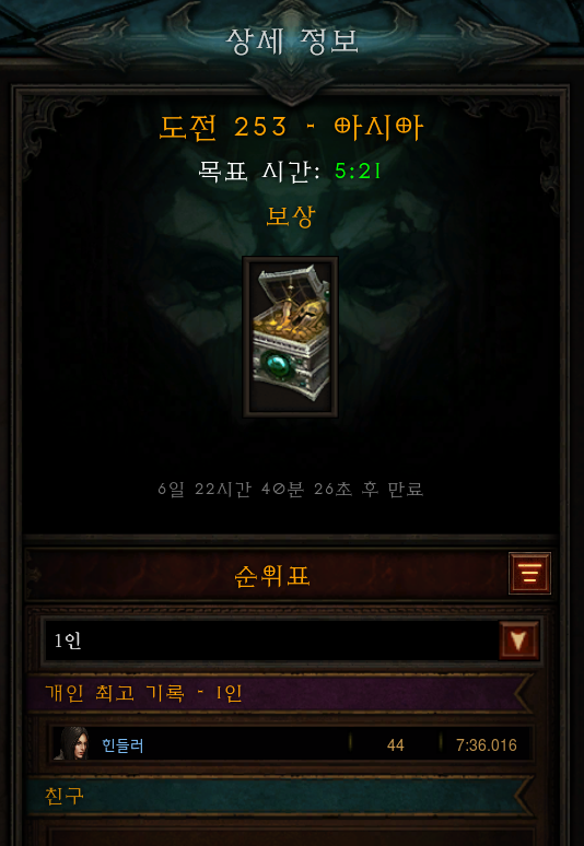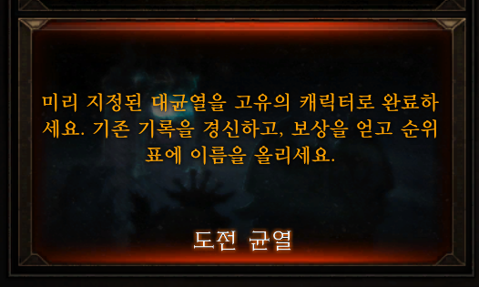 오늘 플레이를 해보니, 도전균열에 악마사냥꾼의 캐릭터로 도전해 볼 수 있었습니다.