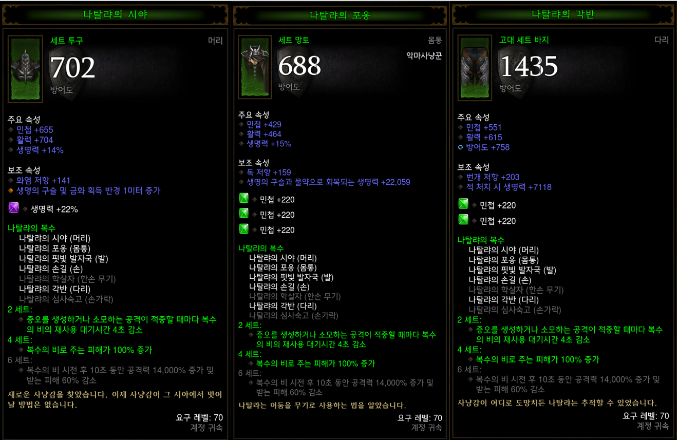 나탈랴의 복수세트장비(머리, 몸통, 발, 손, 다리)