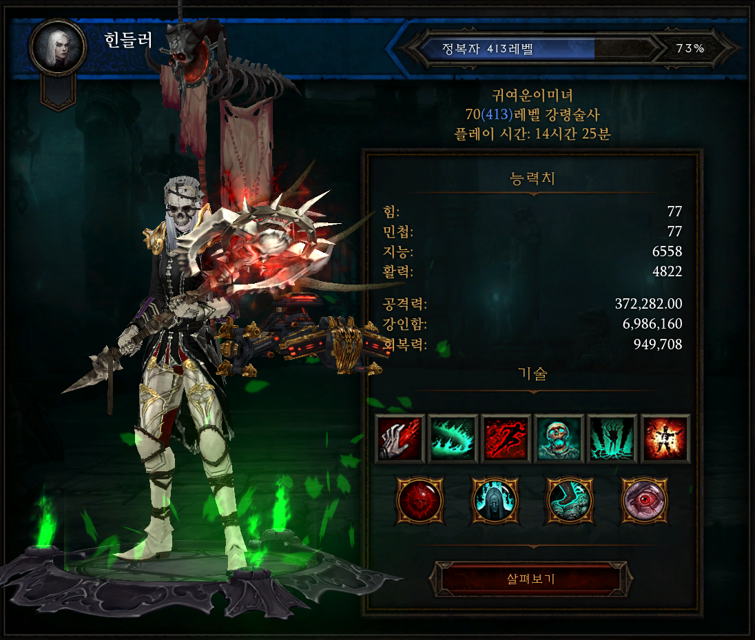비슷한 악마사냥꾼은 접어두고, 강령술사를 새롭게 키워봤는데, 역병 지배자의 수의 세트 모으기가 쉽지는 않네요!