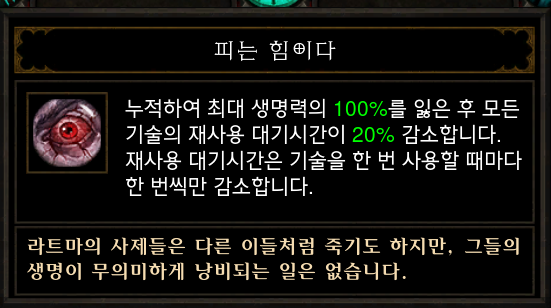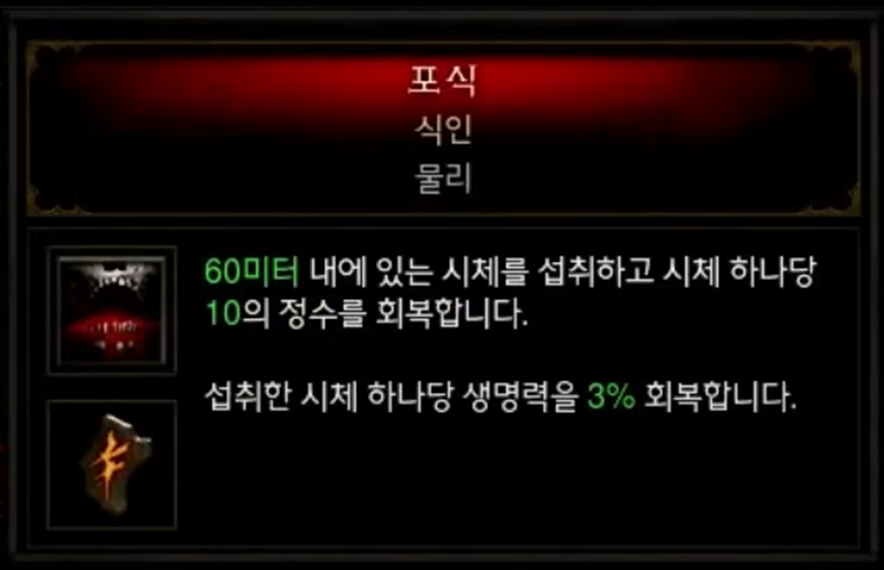 룬효과로 섭취한 시체 하나당 생명력을 3% 회복합니다.