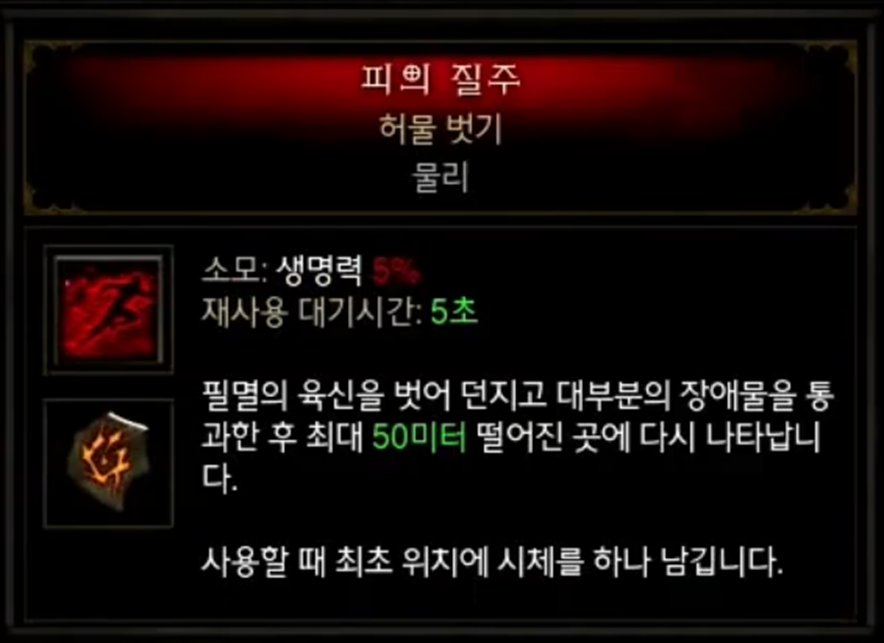 필멸의 육신을 벗어 던지고 대부분의 장애물을 통과한 후 최대 50미터 떨어진 곳에 다시 나타납니다.
