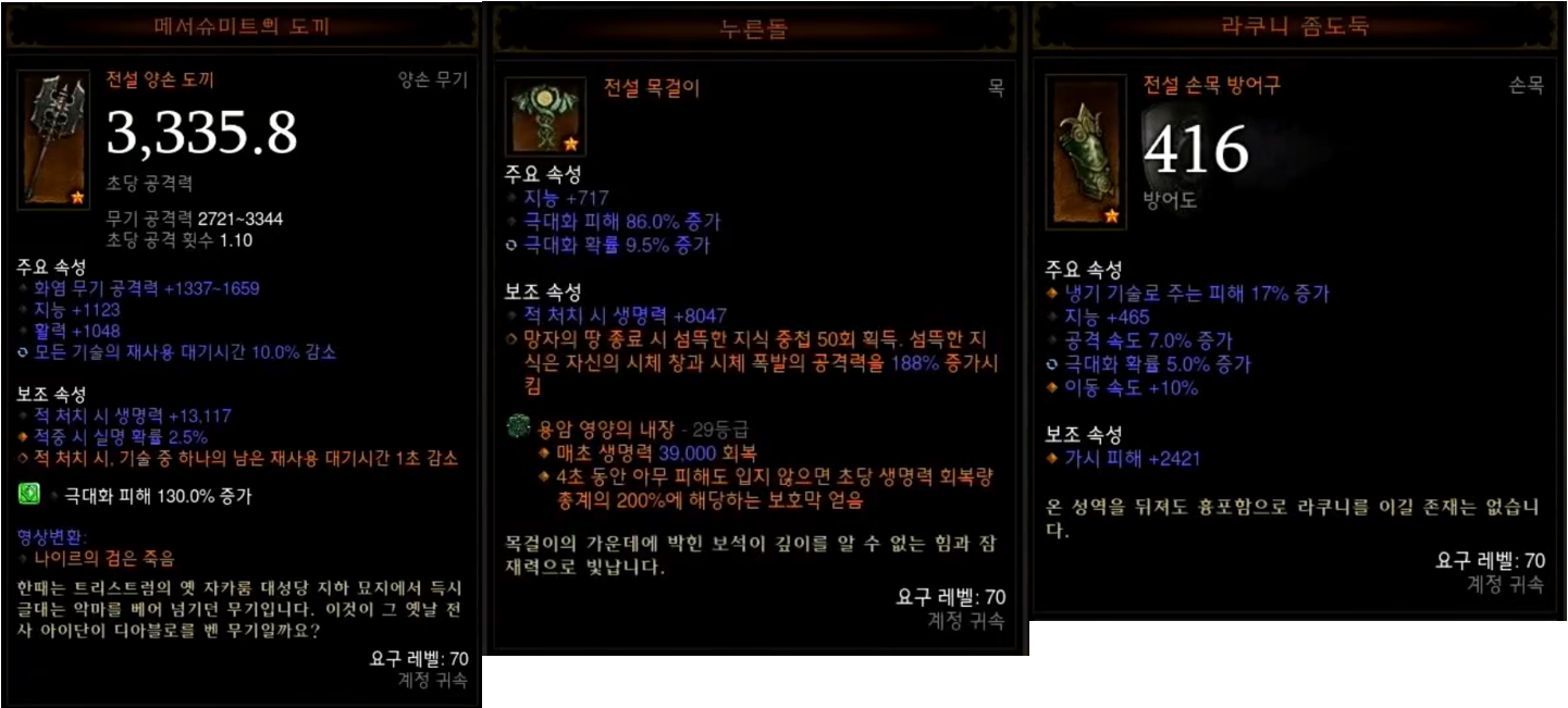 아직 낮은 단계라서 세트템이 잘 떨어지지는 않지만! 얼른 다른 부분들의 세트템도 맞춰 봤으면 좋겠습니다.