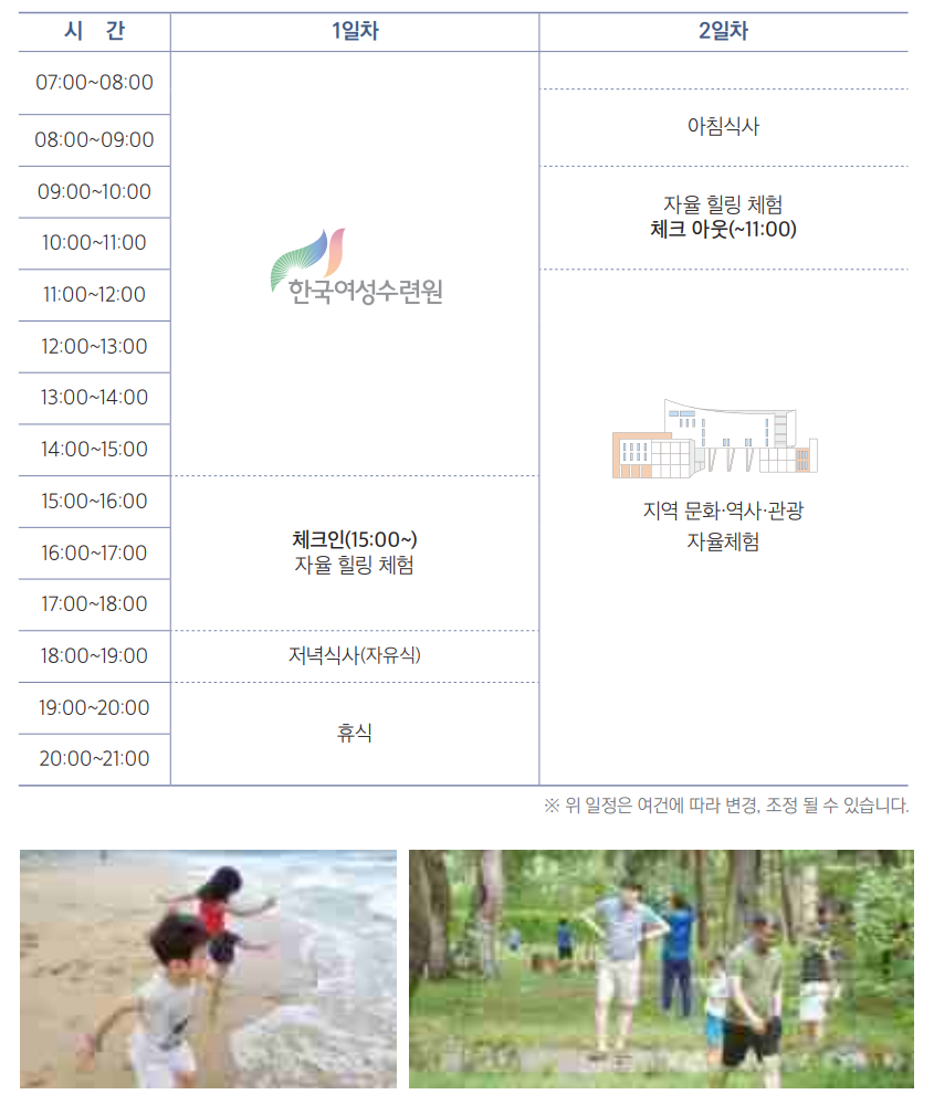 - 대체휴무 및 연휴를 이용한 가족단위 힐링 프로그램