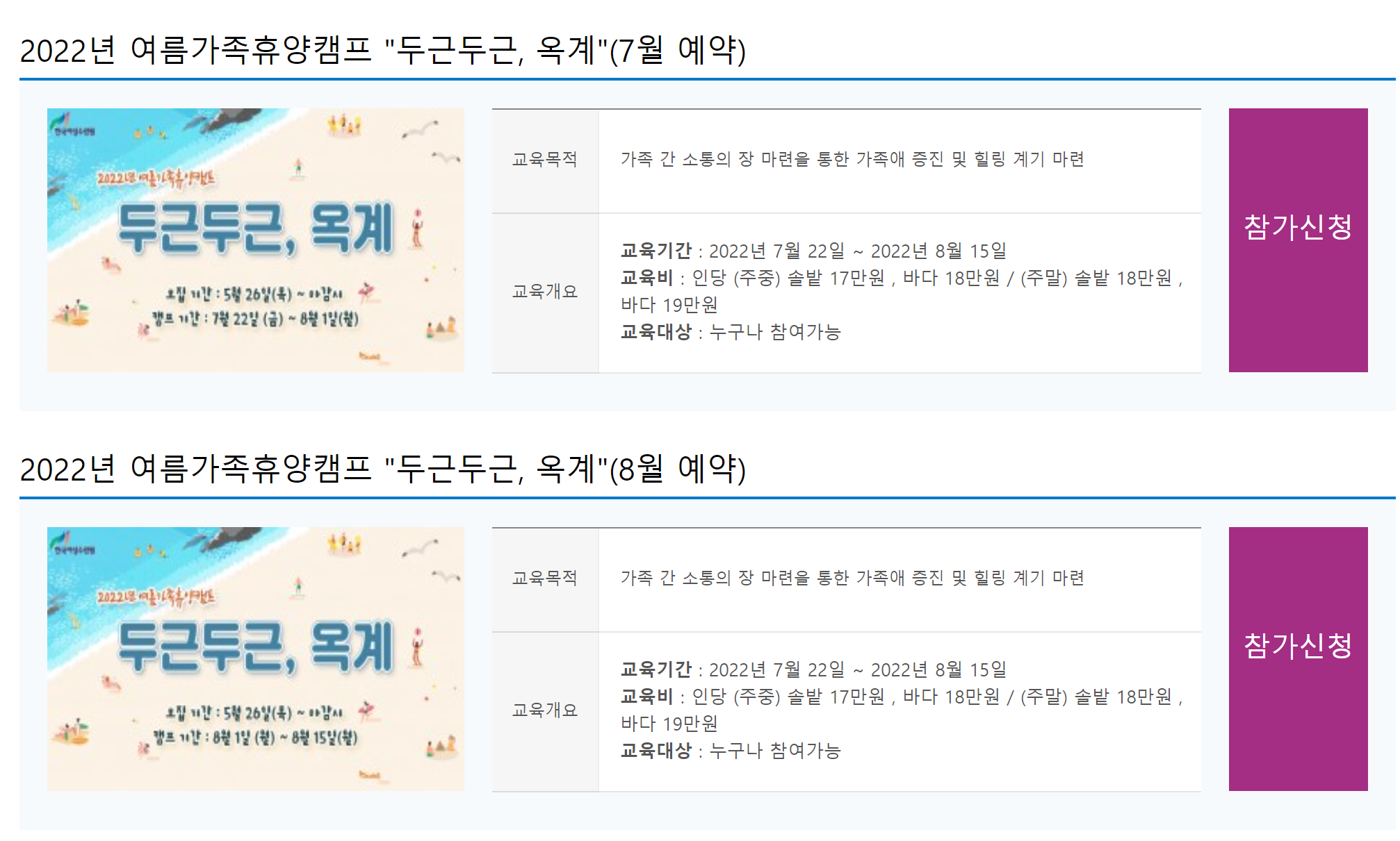 지금 한국여성수련원에서 예약을 받고 있으며, 7월 예약은 이미 반 이상은 신청이 된 상태입니다.