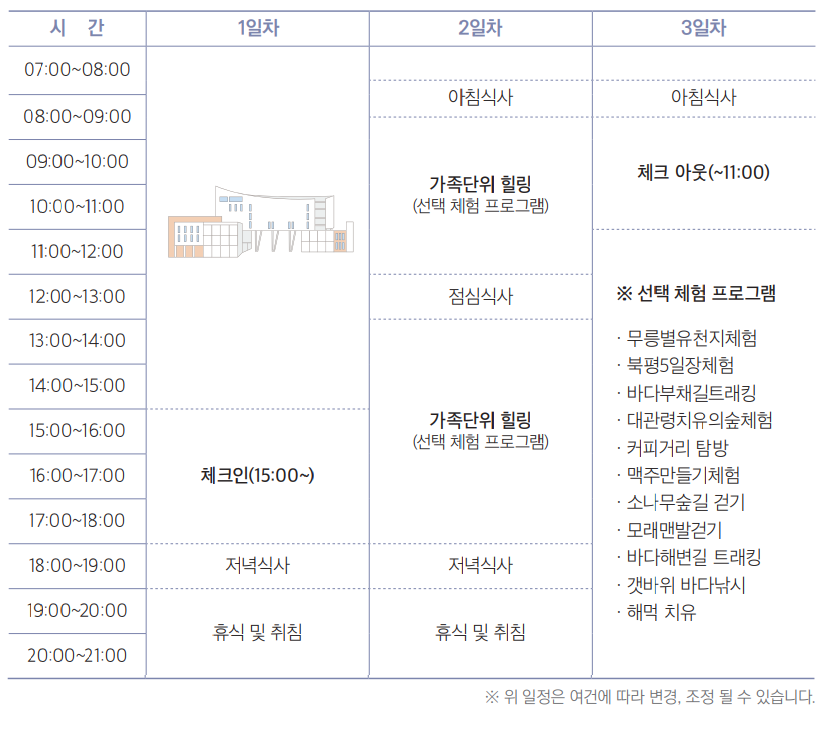 02. 솔향누리 가족힐링캠프(대체휴무 2박3일)