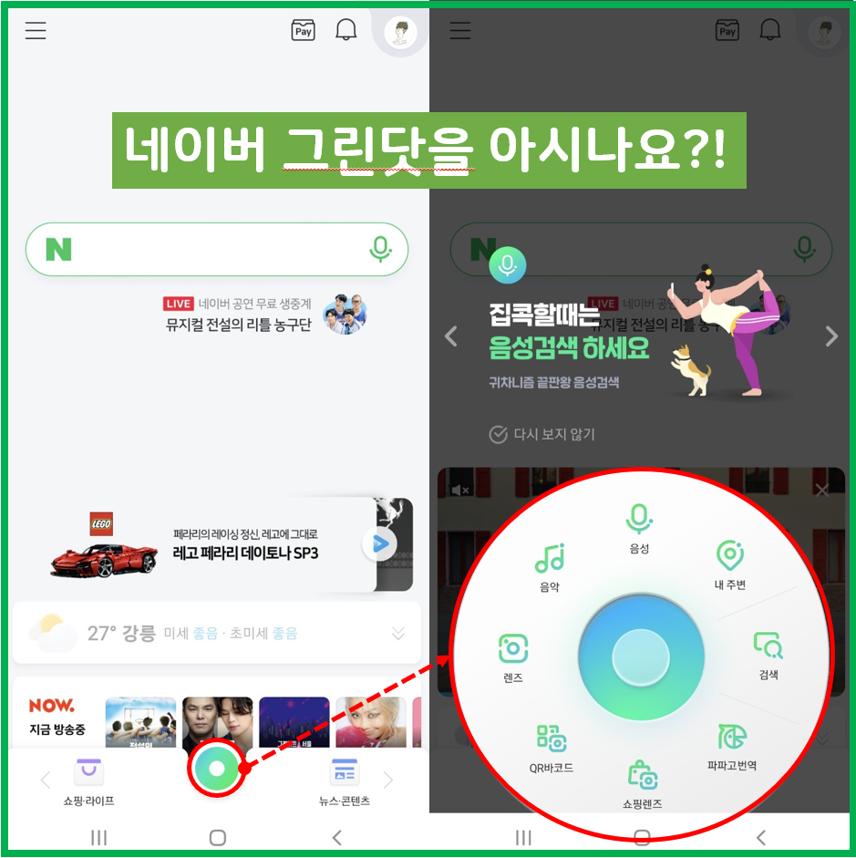매번 네이버 어플을 사용하지만, 한번도 눌러보지 않았던 그린닷?!