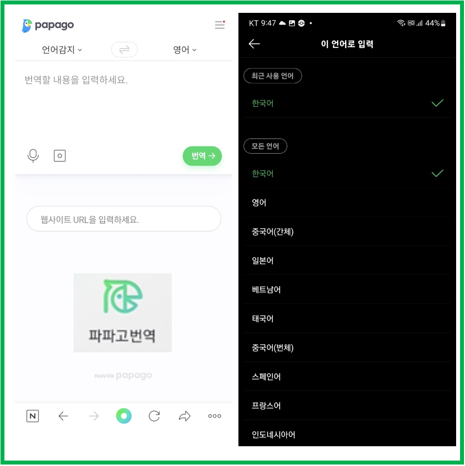 이것은 내가 애용하던 파파고의 기능이 그대로 옮겨져 있습니다.