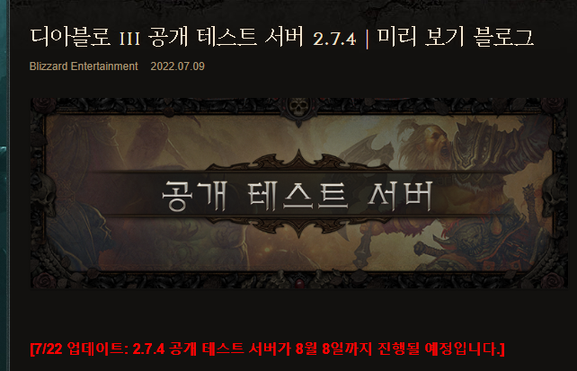 7/22일에 공개된 16일 간의 2.7.4 업데이트 공개 테스트서버가,