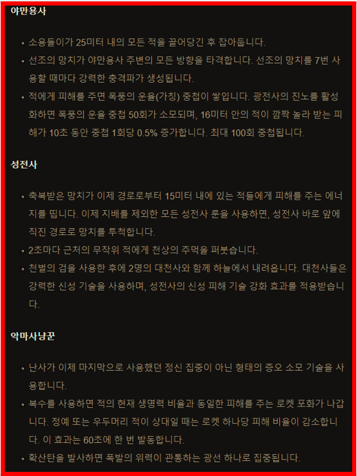 다음은 야만용사 | 성전사 | 악마사냥꾼 의 축성능력입니다.