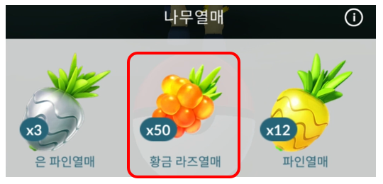 황금 라즈열매는 너무 아까워서 다른 열매들을 이용을 했는데,