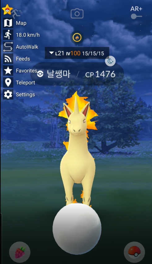 제일 CP가 높은 포켓몬을 선택을 하고 텔레포트를 하였습니다.