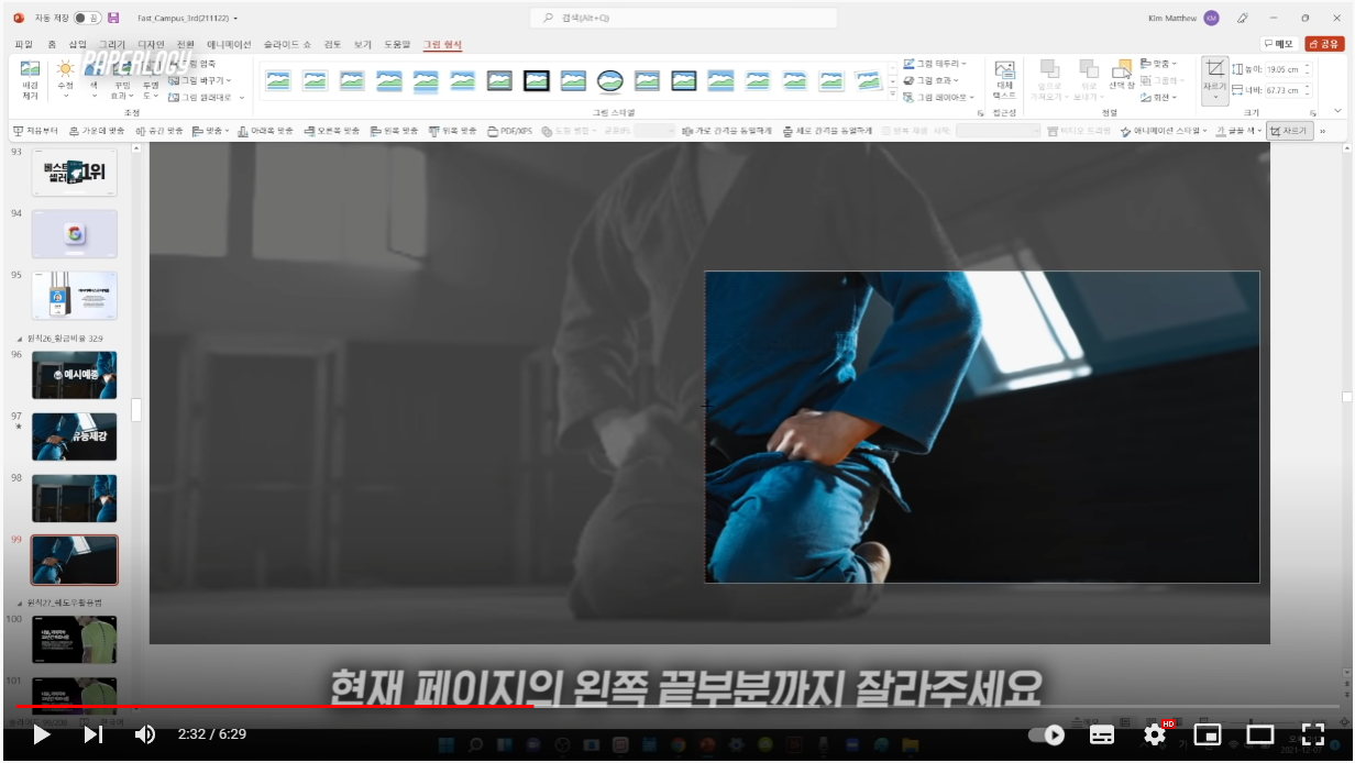 슬라이드에 맞춰서 자르기 해 줍니다.