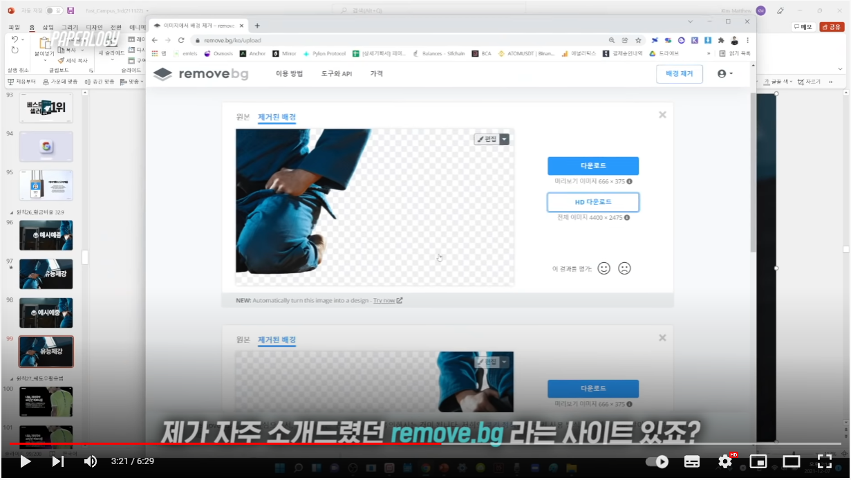 배경 제거된 이미지를 슬라이드 위에 그대로 올려줍니다.