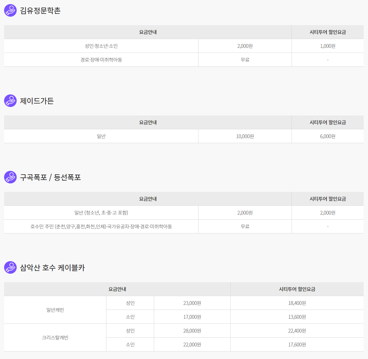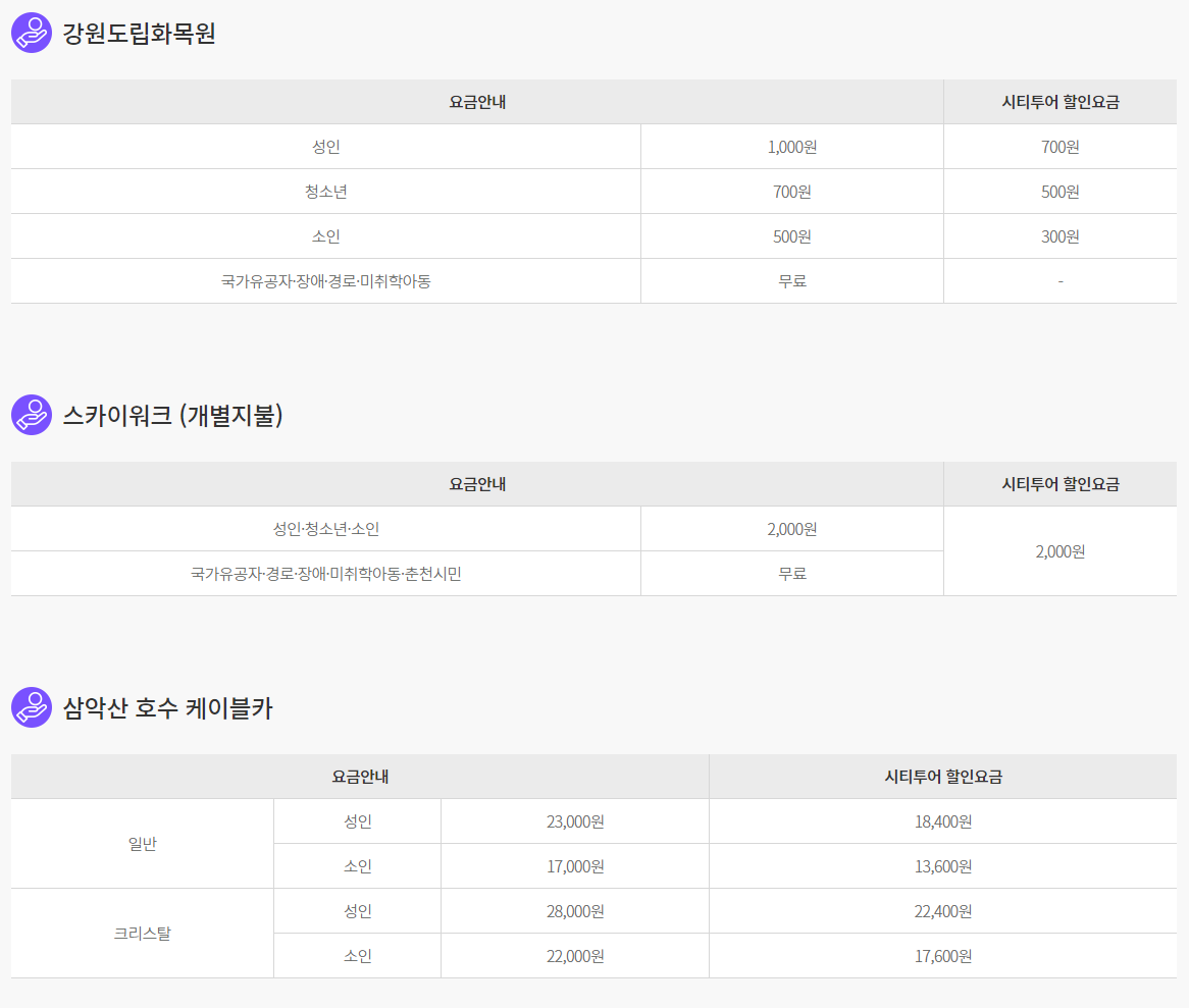 삼악산 호수 케이블카는 시티투어 할인을 이용하는 것이 좋습니다.