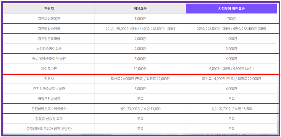 다른 지역에도 있는 '춘천시티투어'가 있어서 소개해 봅니다.
