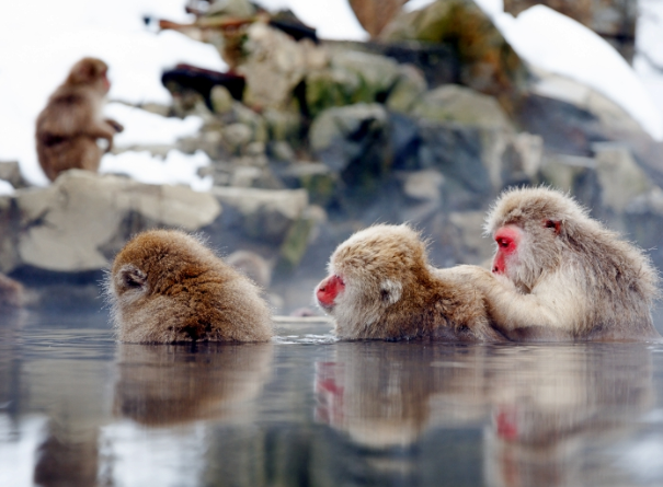 원숭이의 온천에는 암컷이나 원숭이의 새끼들만 이용을 한다고 합니다.