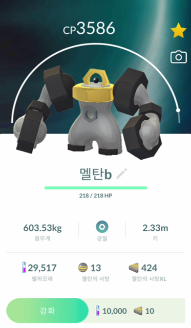 멜탄의 CP가 낮아서, 최대한 높은 개체의 멜탄을 진화하는 것이 좋고,