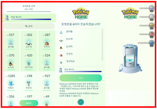 먼저, 포켓몬고에서 포켓몬들을 포켓몬홈으로 전송을 해줘야지,