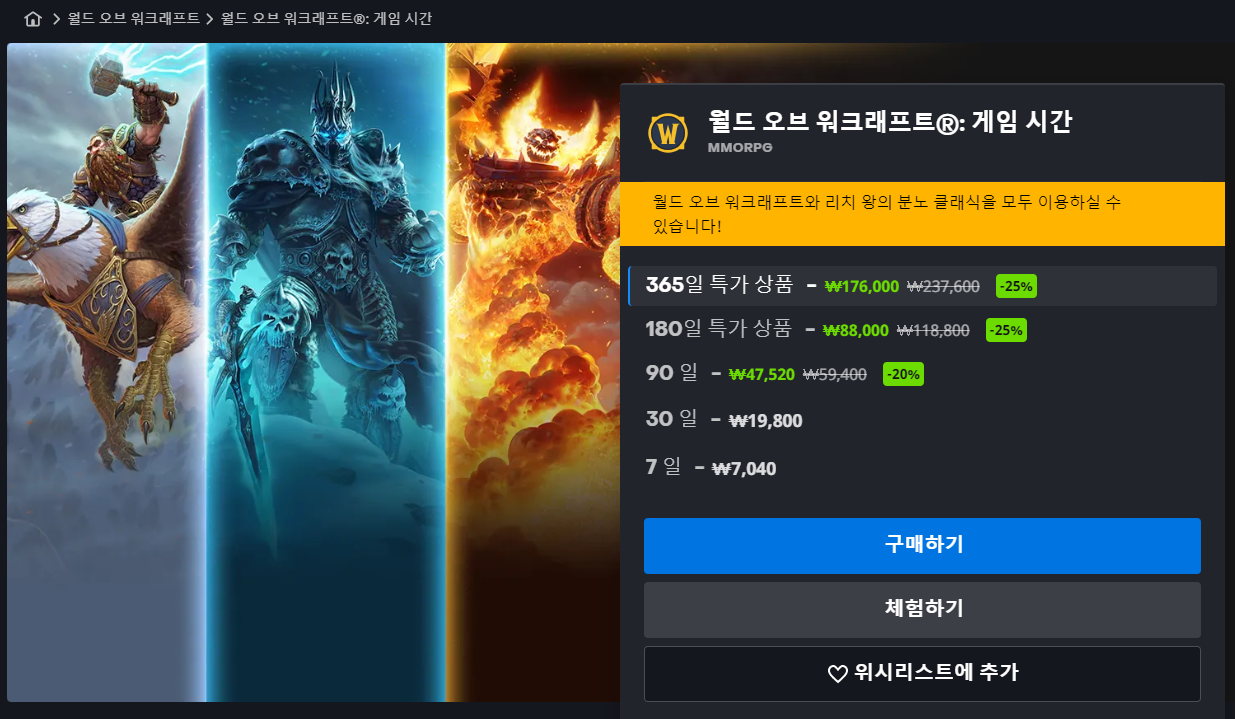 고인물의 게임이라고 부르기에 틀림이 없는 와우입니다.