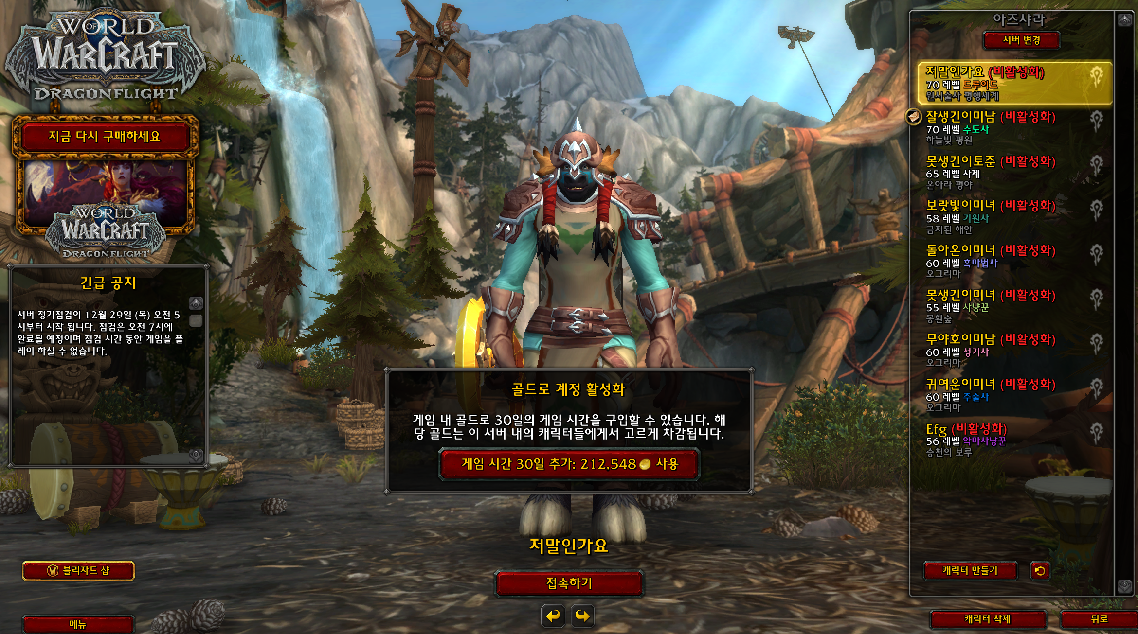왠지 와우는 바빠서 게임을 안하게 되면, 돈이 아깝다는 생각이 많이 드는 게임입니다.