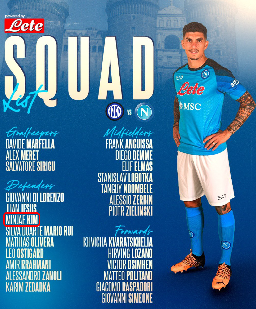 인터밀란전 스쿼드에 김민재가 포함이 되었다.